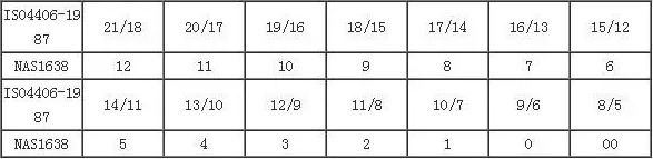 表(biǎo)3-ISO 4406-1987與(yǔ)NAS 1638油液清(qīng)潔度(dù)等級对(duì)應(yìng)關(guān)系