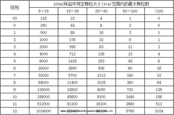 表(biǎo)1-NAS 1638油液清(qīng)潔度(dù)等級标(biāo)準